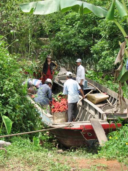 dort auf einen Holzkahn verladen. Wir hatten zur Nachspeise frische Lychees, und