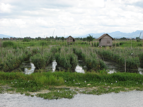 Die Leute am Inle-See Fischen nicht nur, sondern betreiben auch Obst- und Gemüseanbau. Und da sich nahezu alles auf dem Wasser abspielt, sind auch die  Plantagen auf dem Wasser gebaut!  Und wenn Wellen kommen und man ganz genau hinsieht, dann kann man erkennen, dass sich die "Landstücke", auf denen die Pflanzen stehen, bewegen ;-)