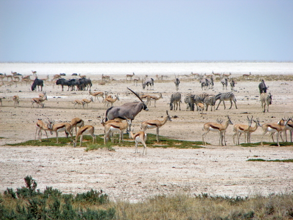 Teil des Jahres ausgetrocknet ist, und den umliegenden Gebieten. Als wir Etosha