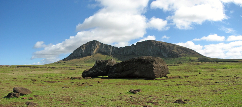 An den Hängen des Vulkans wurden die Moais aus dem Stein herausgearbeitet.