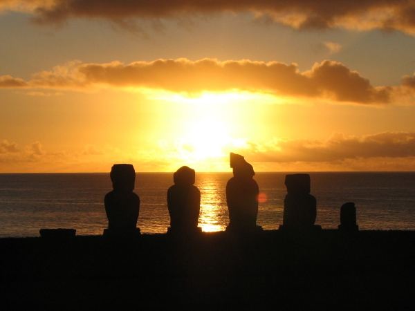 Die Sonne geht unter über dem Ahu Tahai ...